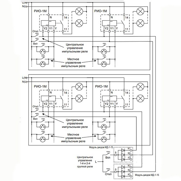 Импульсное реле освещения РИО-1М используется для дистанционного включения или отключения цепей осветительных приборов. Реле обеспечивает дистанционное управления освещением в коридоре, на лестнице, этаже и т.п. с помощью параллельно соединённых кнопок с подсветкой. Дополнительные входы управления позволяют формировать поэтажные и централизованные системы управления освещением здания.