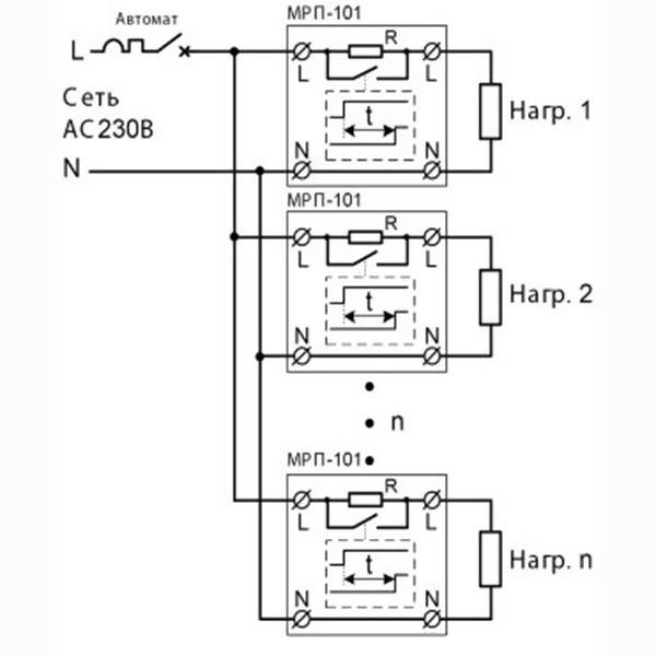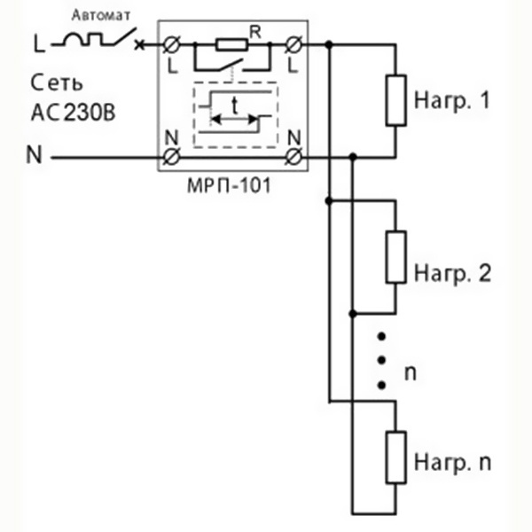 - Подключается МЕЖДУ выключателем и нагрузкой