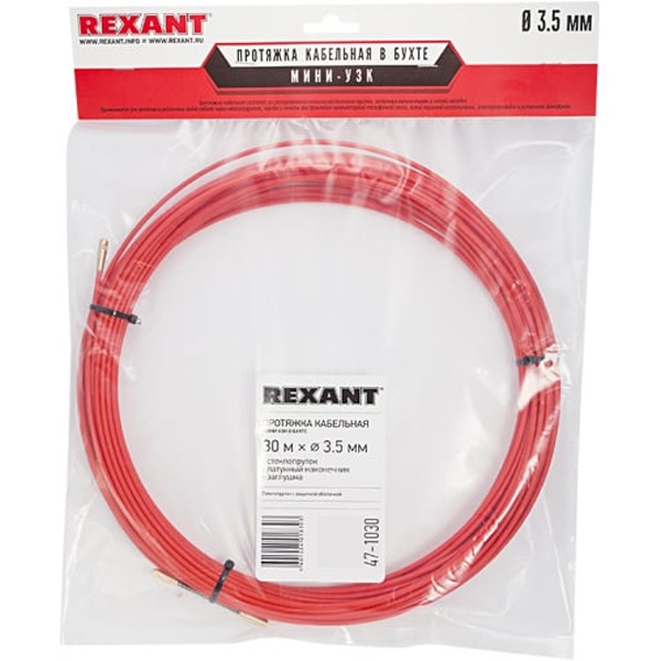 47-1030 Кабельная протяжка стеклопруток Rexant d3,5мм, 30м красная, (мини УЗК в бухте)