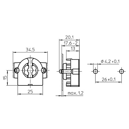 Подпружиненный торцевой патрон G13 на защёлках для линейных люминесцентных ламп Т8. 509154