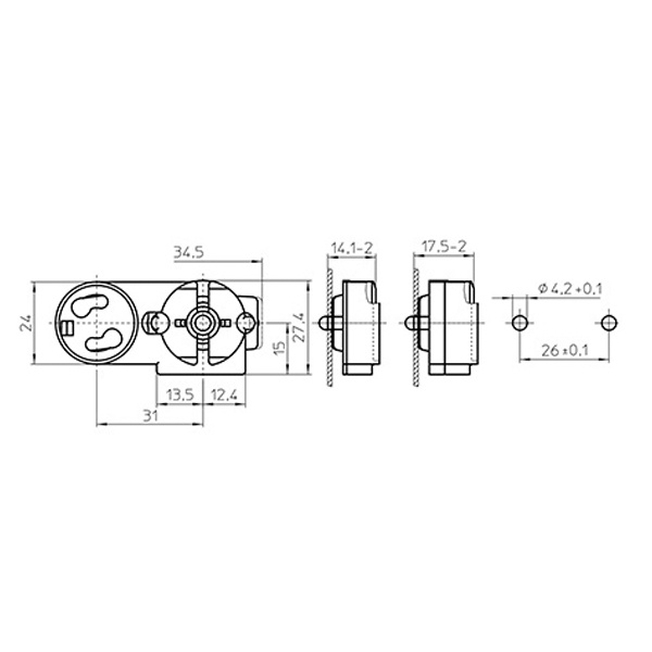 Торцевой патрон G13 со стартеродержателем на защёлках для линейных люминесцентных ламп Т8. 101769