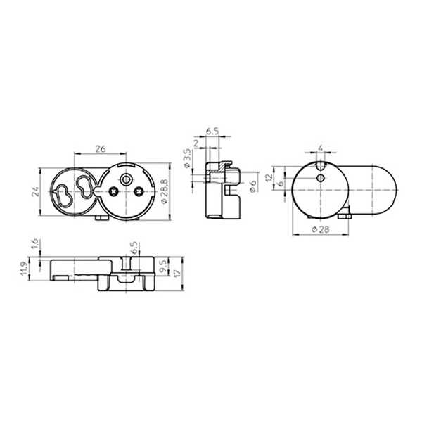 Накидной торцевой патрон G13 со стартеродержателем для линейных люминесцентных ламп Т8. 101785