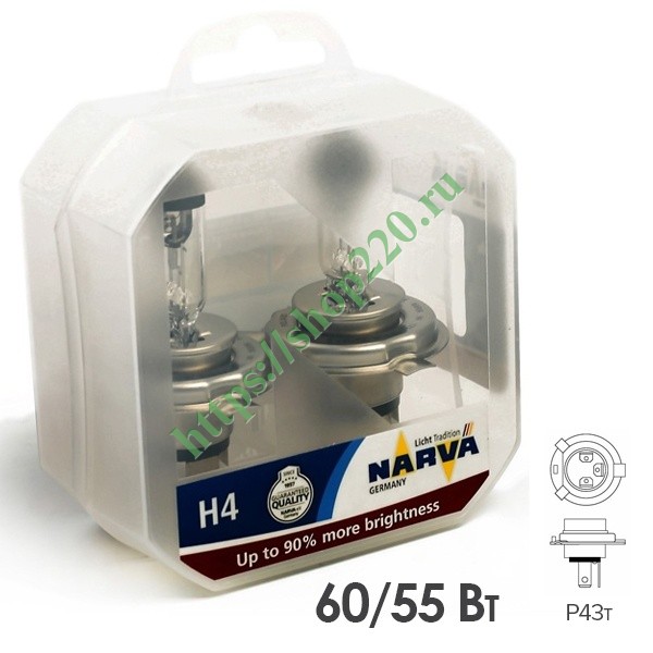 Современные галогенные лампы головного освещения производителя Narva серии Range Power 90 – это идеальные спутники при любых погодных условиях на дороге, так как они увеличивают на 90% освещенность перед автомобилем по сравнению со стандартными лампами. Яркий световой поток повышает безопасность движения, за счет того, что водитель получает больший запас времени для маневра. Изделия предназначены для фар ближнего и дальнего света легковых автомобилей и относятся к типоразмеру Н4 с цоколем Р43t. Они имеют две нити накаливания, номинальная мощность которых соответствует 55 и 60 Ватт соответственно. Лампы работают от сети автомобиля 12 Вольт. Преимуществами комплекта являются более яркий свет, оптимальная видимость при движении в непогоду и хороший срок службы. Он имеет одобрение ECE. Для симметричного светораспределения на дороге лампы следует заменять парами. В комплект входит 2 изделия, которые упакованы в двойную картонную коробку. При транспортировании их следует предохранять от механических повреждений.