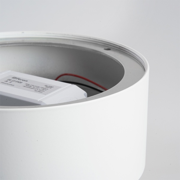 В основании светильника уже расположен драйвер, а корпус возможно закрутить так, что между основанием светильника и натяжным потолком останется место для термокольца, при этом внешне корпус будет плотно прилегать к потолку.