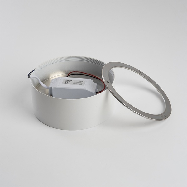 В основании светильника уже расположен драйвер, а корпус возможно закрутить так, что между основанием светильника и натяжным потолком останется место для термокольца, при этом внешне корпус будет плотно прилегать к потолку.
