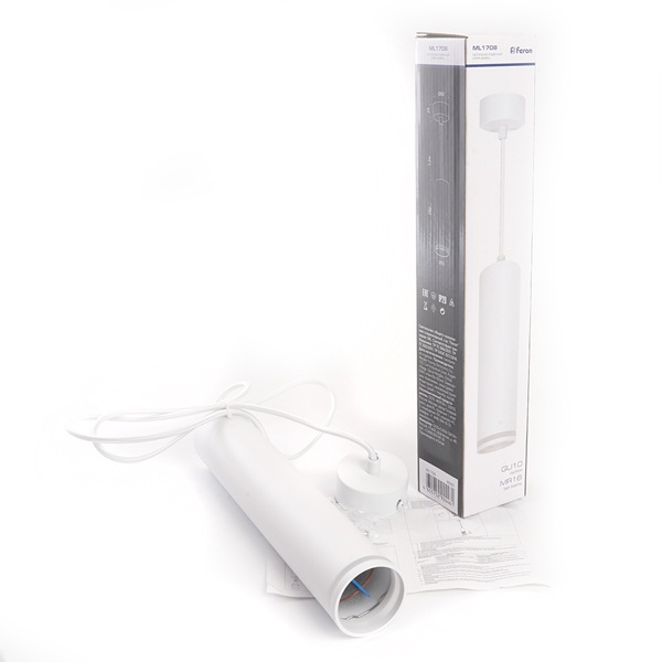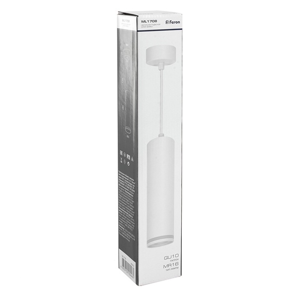 Светильник накладной под лампу, спот (ИПО) FERON ML1708, GU10 35W, 230V, IP20, цвет белый, корпус алюминий, акрил, 55*55*280