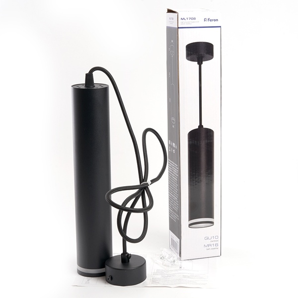 Подвесной ламповый светильник Ферон, под лампу с цоколем GU10 максимальной мощностью 35 Ватт, цвет черный 48084