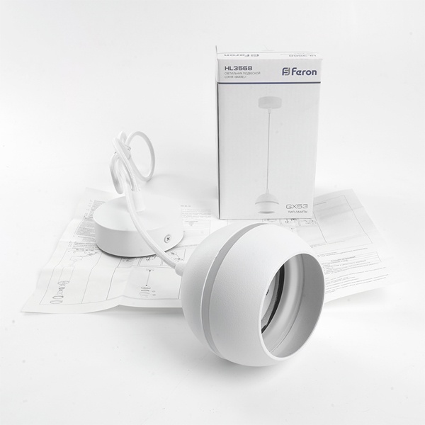 Подвесной светильник в алюминиевом белом корпусе Ферон HL3568, под лампу GX53, напряжением 230 Вольт мощностью 15 Ватт 48089