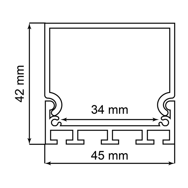 Ширина - 42 мм Высота - 45 мм Длина - 2000 мм Цвет - серебро Материал - алюминий
