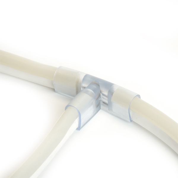 Элемент соединения двух отрезков неоновой ленты LS721 с ответвлением используется данный соединитель LD516.