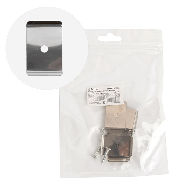 Крепеж для профиля FERON LD351 «накладной», цвет серебро, 30*4*19мм