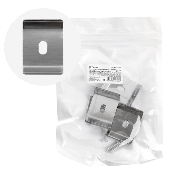 Крепеж для профиля FERON LD369 «накладной», цвет серебро, 33*8*25мм