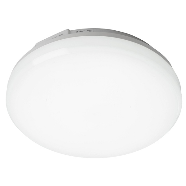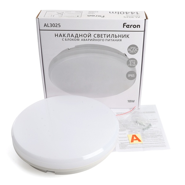 Белый влагозащищенный круглый светодиодный светильник Ферон мощностью 18Вт холодного света с блоком аварийного питания 3ч, серии AL3025 48296