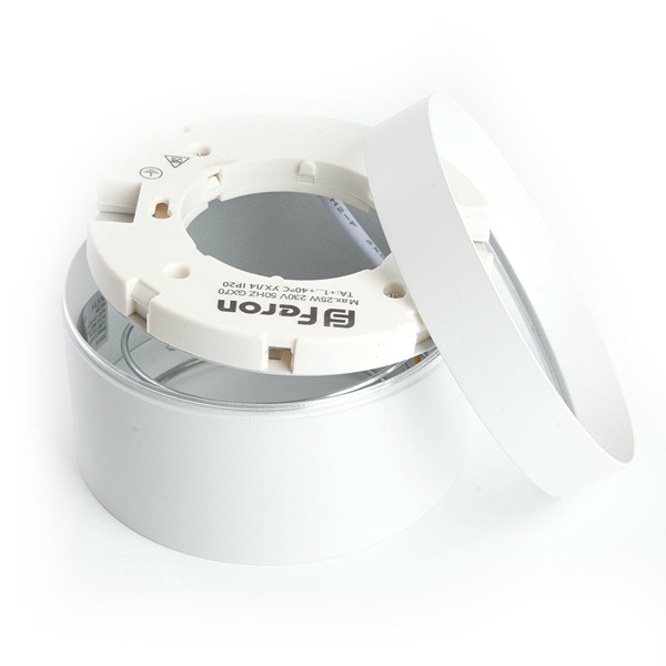 Накладной ламповый алюминиевый светильник Ферон, под лампу с цоколем GX70 максимальной мощностью 25 Ватт, цвет белый 48299
