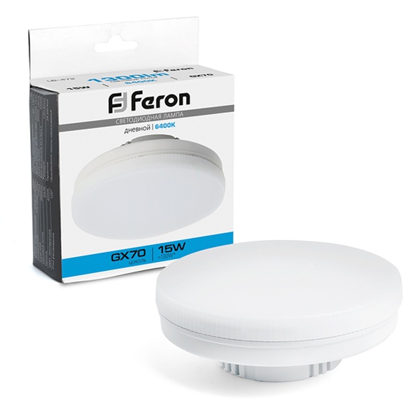 Лампа светодиодная FERON LB-472, GX70 (таблетка), 15W 230V GX70 6400К (дневной), рассеиватель матовый белый, 1300Lm, угол рассеивания 120, 40*110мм