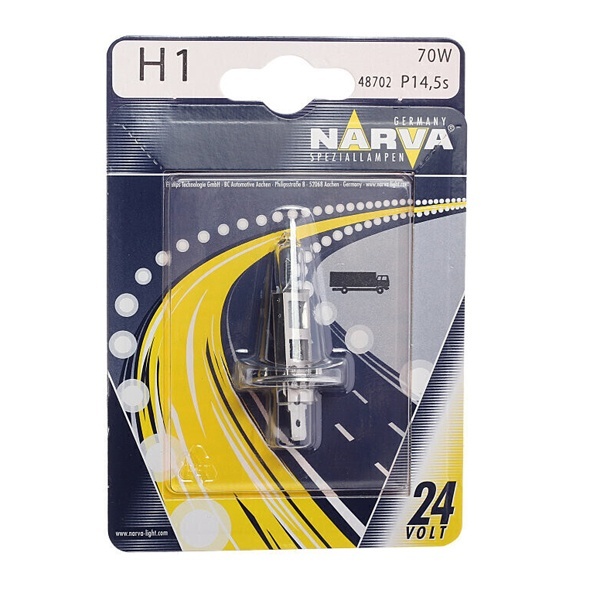 Автомобильная лампа известной компании Narva серии Standart принадлежит к категории Н1 с цоколем P14.5s. Она излучает равномерный желто-белый свет и эффективно освещает дорогу перед автомобилем. Лампа имеет одну нить накаливания и ее номинальная мощность составляет 70 Ватт. Она работает от сети автомобиля 24 Вольт и представляет собой современное, универсальное устройство для света ближних, дальних и противотуманных фар грузовых автомобилей и автобусов. Надежная и доступная по стоимости галогенная лампа имеет долгий срок службы и отличается высокими техническими характеристиками. Она имеет хорошую светоотдачу, компактна, не нуждается в особом обслуживании и легко устанавливается в автомобильные фары. Изделие имеет одобрение ECE. В комплект входит 1 единица, которая упакована в фирменный герметичный блистер. При транспортировании ее следует предохранять от механических повреждений.