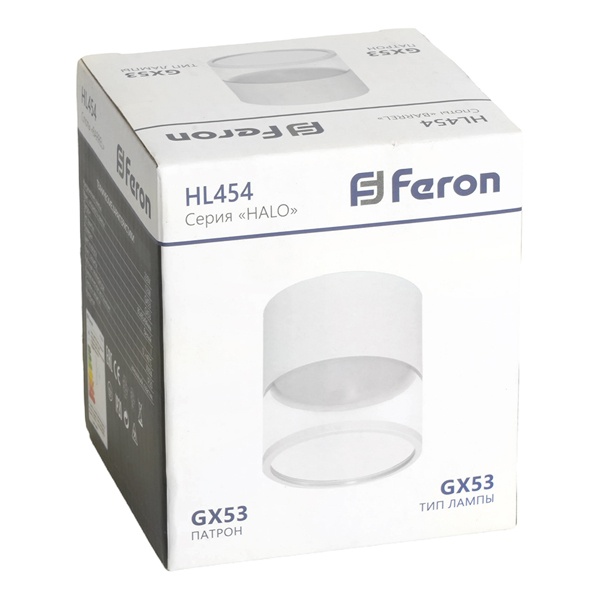 Накладной ламповый алюминиевый светильник Ферон, под лампу с цоколем GX53 максимальной мощностью 12 Ватт, цвет белый 48750