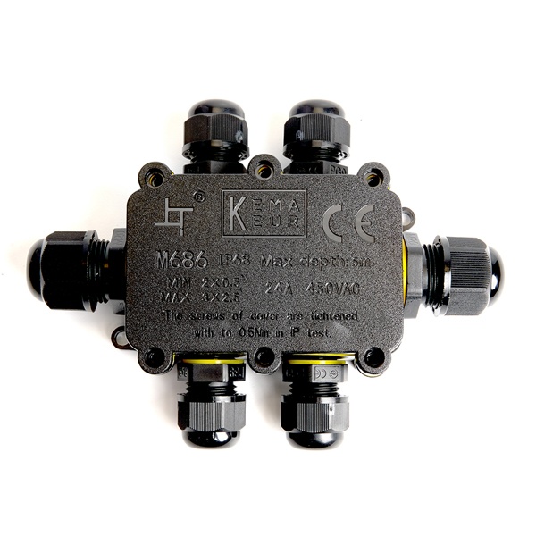 • Коробка распаячная Stekker LD526 140х100х36 водонепроницаемая 6 выходов 450В черная IP68