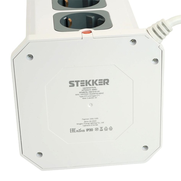 Прочный корпус, устойчивый к механическим повреждениям;Удобное расположение розеток для подключения нескольких устройств одновременно;Компактная форма и стильный внешний вид;Увеличенная длина кабеля для удобного размещения в помещении.STEKKER HM10-61-01 идеально подходит для использования в домашних условиях, офисах, мастерских, учебных заведениях и других помещениях, где требуется организовать безопасное и удобное распределение электроэнергии.