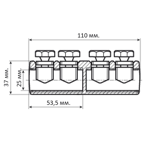 • Каждый болтовой соединитель является мультиразмерным и рассчитан на диапазон сечений кабеля