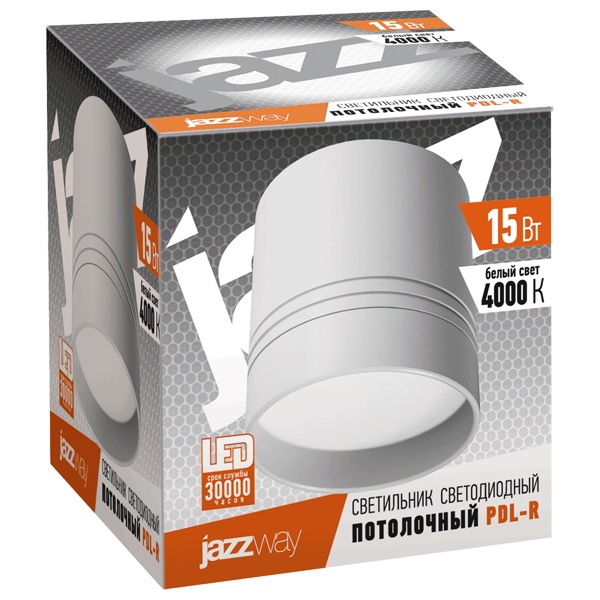 Накладной, светодиодный светильник PDL-R JazzWay, 15Вт, нейтральный белый свет, цвет корпуса белый 5005709