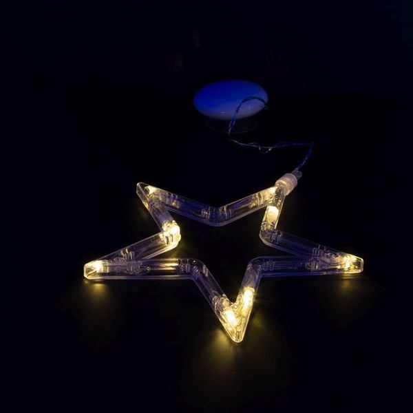 Фигура светодиодная "Звездочка" на присоске с подвесом предназначена для украшения жилых помещений с нормальным микроклиматом, не привязана к энергетическим сетям, с помощью присоски устанавливается на любые верхние горизонтальные конструкции. Отличный подарок-сувенир на Рождество и Новый год, который доставит радость и ощущение праздника взрослым и детям. Установленная в детской комнате над кроватью малыша, новогодняя фигурка быстро убаюкает ребенка мягким сказочным светом и уведет в волшебную страну снов.Описание: Новогодняя фигурка led в виде прозрачной пятиконечной звезды. Цвет светодиодной подсветки – теплый белый.Дополнительная информацияПроизводитель – компания Neon-Night.Расстояние между лучами – 185 мм. Толщина – 10 мм.Материал – композитный полимер.Количество светодиодов – 8 штук.Источник питания – блок из трех батареек, тип ААА (в комплект не входят). Расположение блока – в конструкции вакуумного элемента монтажа. Подвес – проводник (длина 200 мм).Электротехнические характеристики:- мощность нагрузки – 1 Ватт;- напряжение – 4,5 Вольта.- режим свечения – постоянный.Диапазон температур с полным сохранением рабочего потенциала – от 0 до +40 градусов Цельсия.Коэффициент защиты – IP20.