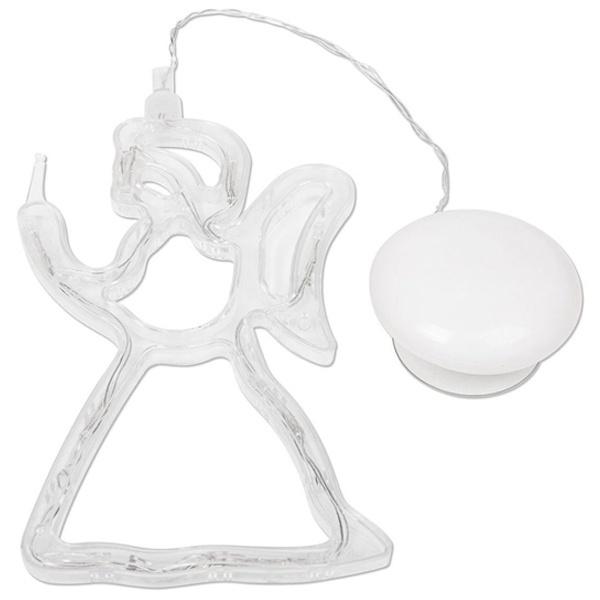 Фигура светодиодная "Ангелок" на присоске с подвесом предназначена для украшения жилых помещений с нормальным микроклиматом, не привязана к энергетическим сетям, с помощью присоски устанавливается на любые верхние горизонтальные конструкции. Отличный подарок-сувенир на Рождество и Новый год, который доставит радость и ощущение праздника взрослым и детям. Установленная в детской комнате над кроватью малыша, новогодняя фигурка быстро убаюкает ребенка мягким сказочным светом и уведет в волшебную страну снов.Описание: Новогодняя фигурка led в виде прозрачного ангелочка. Цвет светодиодной подсветки – теплый белый.Дополнительная информацияПроизводитель – компания Neon-Night.Высота новогодней фигурки – 195х115х10 мм.Материал – композитный полимер.Количество светодиодов – 8 штук.Источник питания – блок из трех батареек, тип ААА (в комплект не входят). Расположение блока – в конструкции вакуумного элемента монтажа. Подвес – проводник (длина 200мм).Электротехнические характеристики:- мощность нагрузки – 1 Ватт;- напряжение – 4,5 Вольта.Диапазон температур с полным сохранением рабочего потенциала – от 0 до +40 градусов Цельсия.Коэффициент защиты – IP20.