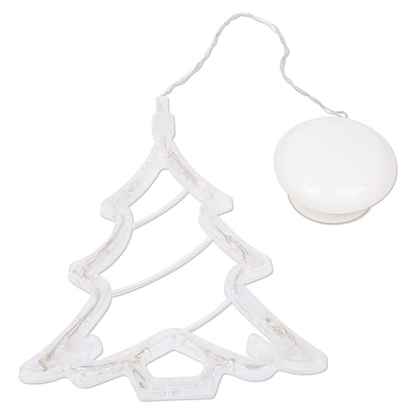 В верхней части фигурки имеется блок для трех батареек типа ААА и присоской, расположенной на расстоянии 200 мм от блока. Благодаря присоске, новогоднюю фигурку «Елочка» можно прикрепить на зеркало, окно и любую гладкую поверхность.