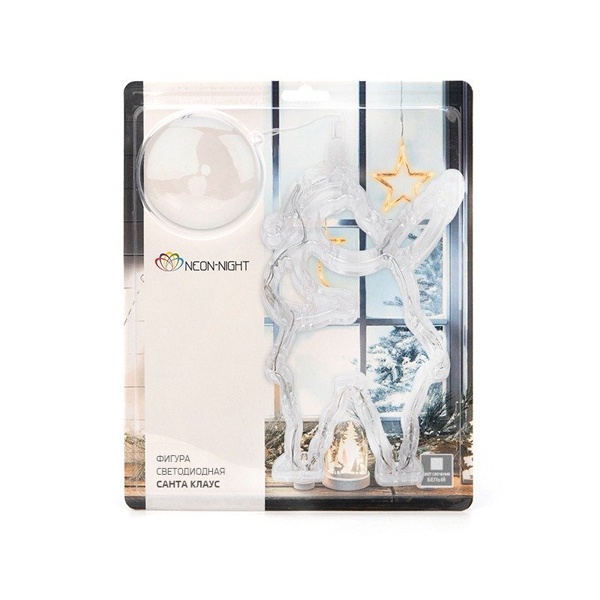 Фигура светодиодная "Санта Клаус" 190х130х10мм 8LED бел. 1Вт 4.5В IP20 на присоске с подвесом элементы питания 3хAAA (в компл.) Neon-Night 501-018