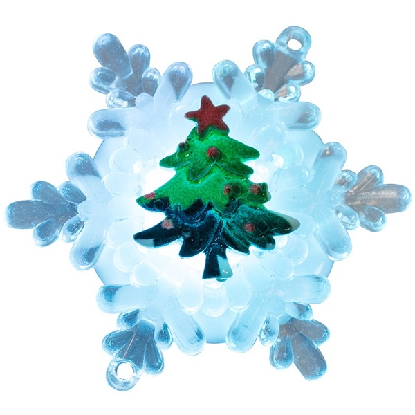Световая фигурка "елочка на снежинке" RGB на присоске предназначена для украшения жилых помещений с нормальным микроклиматом, не привязана к энергетическим сетям, с помощью присоски устанавливается на любые вертикальные и горизонтальные конструкции с гладкой поверхностью. Отличный подарок-сувенир на Рождество и Новый год, который доставит радость и ощущение праздника взрослым и детям. Установленная в детской комнате на шкафчик или оконное стекло, новогодняя фигурка откроет перед ребенком мир фантазий и быстро убаюкает волшебными переливами света.