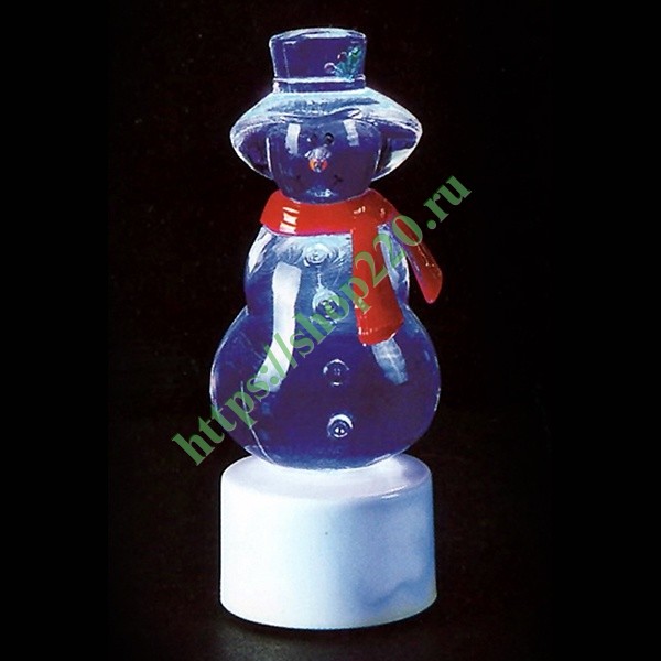 Описание: Объемная led-фигурка новогодняя – Снеговик с шарфом на подставке. Цвет светодиодной подсветки – RGB.