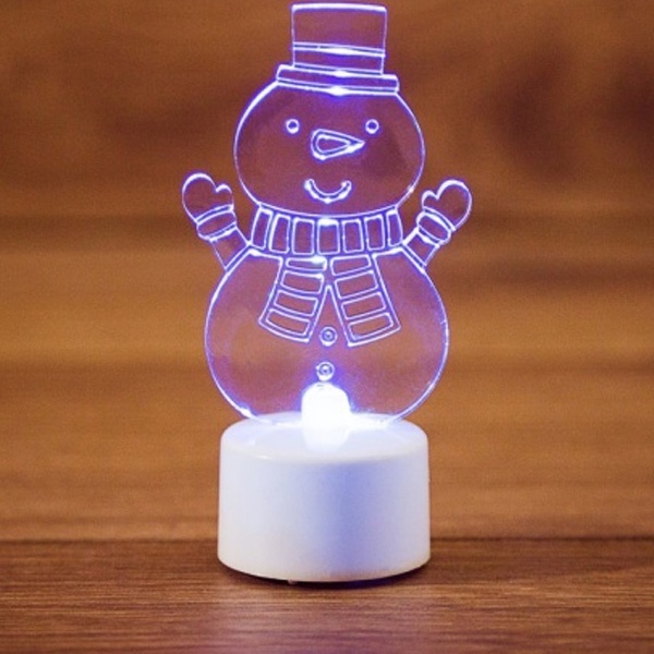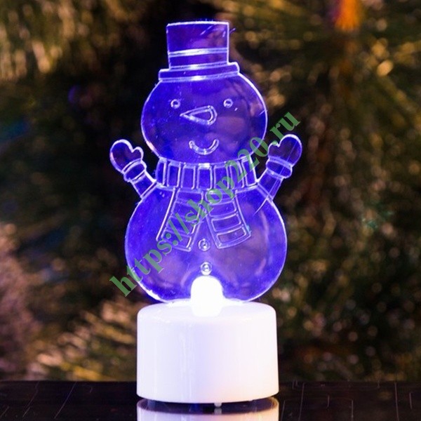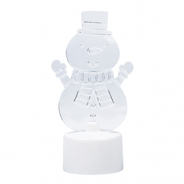 Описание: Новогодняя фигурка led, изображающая веселого Снеговика с шарфом и поднятыми в приветствие руками. Цвет светодиодной подсветки – RGB.