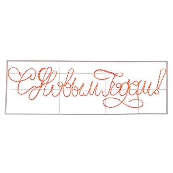 Описание: Новогодняя светодиодная фигура, расположенная на арматурном каркасе, в виде надписи, выполненной прописными буквами. Цвет – красный.