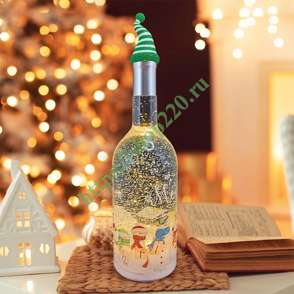 Светильник декоративный новогодний «Звезда» выполнен в виде бутылки с праздничными рисунками и надписями. Через прозрачные стенки колбы видно вихрь сверкающего снегопада и конфетти. 6 светодиодов излучают теплый свет и эффектно подчеркивают мерцание блесток. Светильник может работать от USB источника питания или быть запитан от 3 батареек типа AА (батарейки в комплект не входят), что позволяет устанавливать фонарь на любой горизонтальной поверхности без необходимости поиска ближайшей розетки.