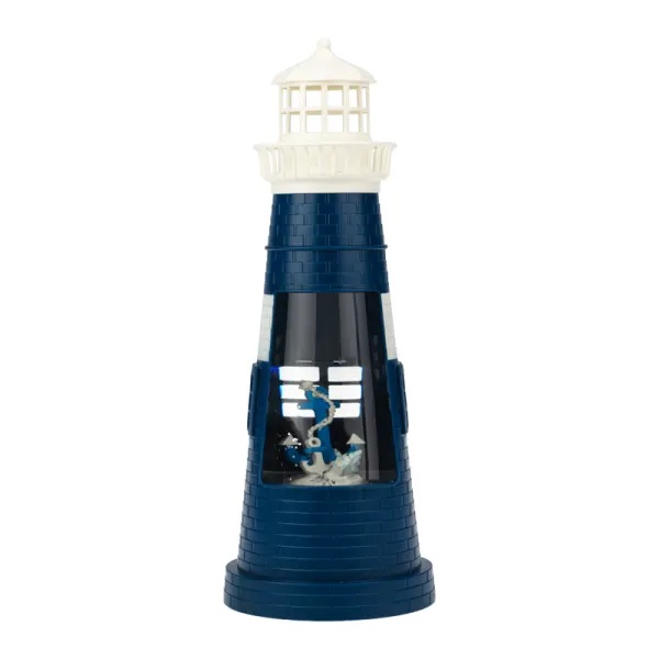 Декоративный светильник «Маяк синий» — прекрасное украшение гостиной, детской, фотозоны и отличный подарок к любому празднику. Прозрачная колба с фигуркой якоря наполнена жидкостью, в которой находятся серебристые блестки. При включении создается эффектный сверкающий вихрь. Диоды ярко подсвечивают композицию, излучая теплый белый свет. Общая высота изделия — 32 см. Фонарь можно установить в любом удобном месте, благодаря независимости от розетки — питание осуществляется с помощью 3 батареек типа АА.