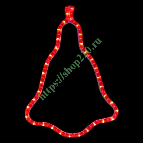 Эти изделия не потребуют дополнительных затрат для монтажа. Световые фигуры с дюралайтом нужно просто установить в желаемом месте и подвести питание 220 В. Фигура "Колокольчик" красный, размер 36*30 см, потребление 16 Вт.