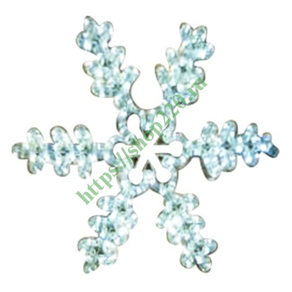 Снежинка имеет размер 45*38 см и Белое свечение светодиодов.