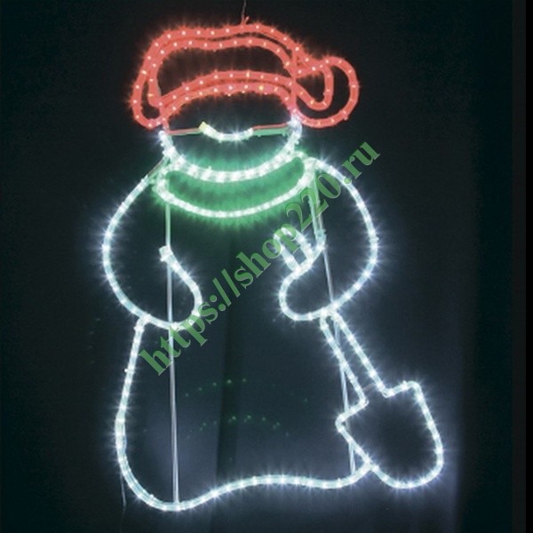 Фигура LED Снеговик с лопатой, Мультиколор, размер 94x63см IP65