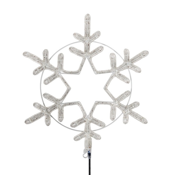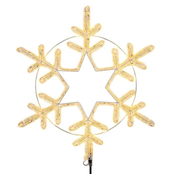 Фигура "Снежинка" изготовлена из светодиодного дюралайта, который закреплен на металлическом каркасе. Такие фигуры используются для украшения фасадов и стен как коммерческих, так и частных домов и дач, торговых центров, елей, витрин магазинов, кафе и многих других объектов. Фигура имеет в комплекте шнур питания с вилкой, благодаря чему удобна в подключении. Наличие специального "ушка" на металлиском каркасе заметно облегчит ваш монтаж.