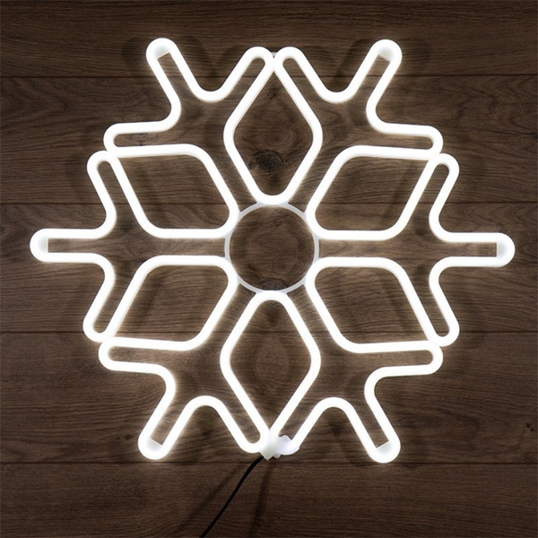 Фигура «Снежинка» изготовлена из гибкого неона, который закреплен на металлическом каркасе.Такие фигуры используются для украшения фасадов и стен как коммерческих, так и частных домов и дач, торговых центров, елей, витрин магазинов, кафе и многих других объектов.Фигура имеет в комплекте шнур питания с вилкой, благодаря чему удобна в подключении.Наличие специального «ушка» на металлическом каркасе заметно облегчит монтаж.«Снежинка» имеет размер 60х60 см и белое свечение светодиодов.
