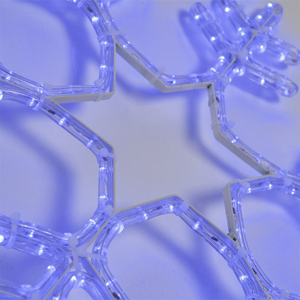 Снежинка имеет размер 55*55 см и Синее свечение светодиодов.