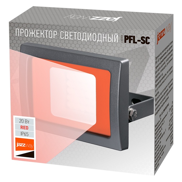 Светодиодный прожектор для наружного и ландшафтного освещения JazzWay PFL-SC, 20Вт, красного свечения, для архитектурной подсветки 5010499