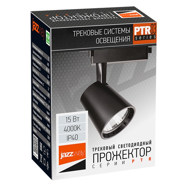 Светодиодный прожектор для трековых систем JazzWay PTR 03, 15Вт, нейтральный белый свет, черный корпус 5010604