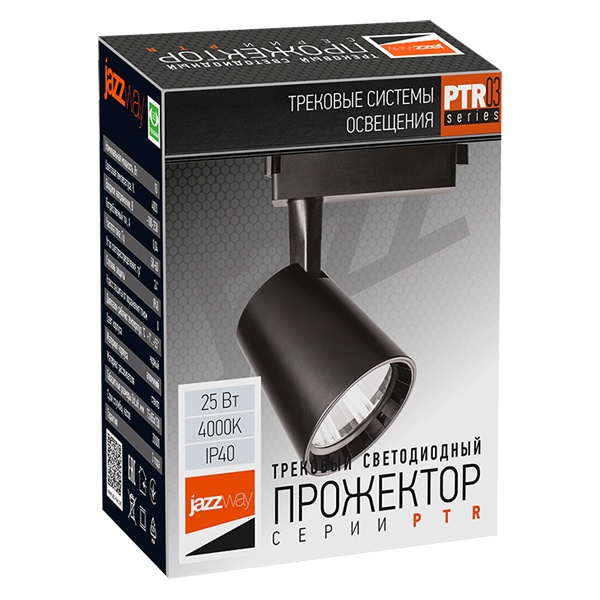 Светодиодный прожектор для трековых систем JazzWay PTR 03, 25Вт, нейтральный белый свет, черный корпус 5010611