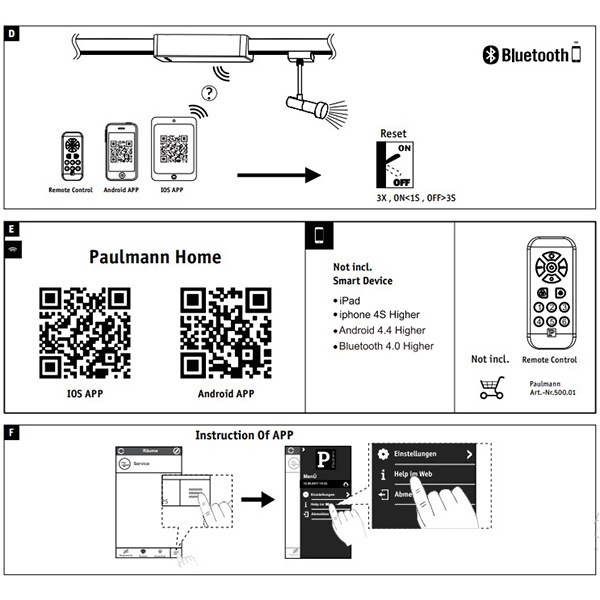 Диммер / переключатель управляется через Bluetooth - выбирайте между бесплатным приложением Paulmann Home для смартфона (в разработке) и планшета или отдельно доступным пультом дистанционного управления Smart Home.