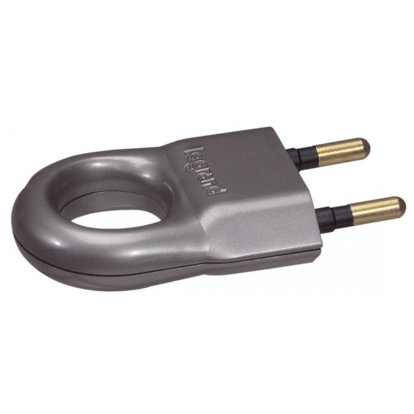 Пластиковая вилка с кольцом (50165) алюминиевого цвета с двумя контактами на 6 Ампер 050165