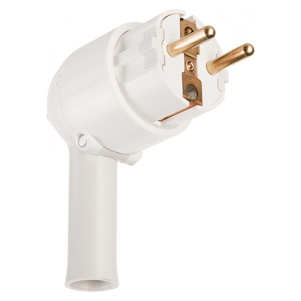 Пластиковая вилка с рычагом для извлечения вилки из розетки (50175) белого цвета с двумя контактами и заземлением на 16 Ампер 050175