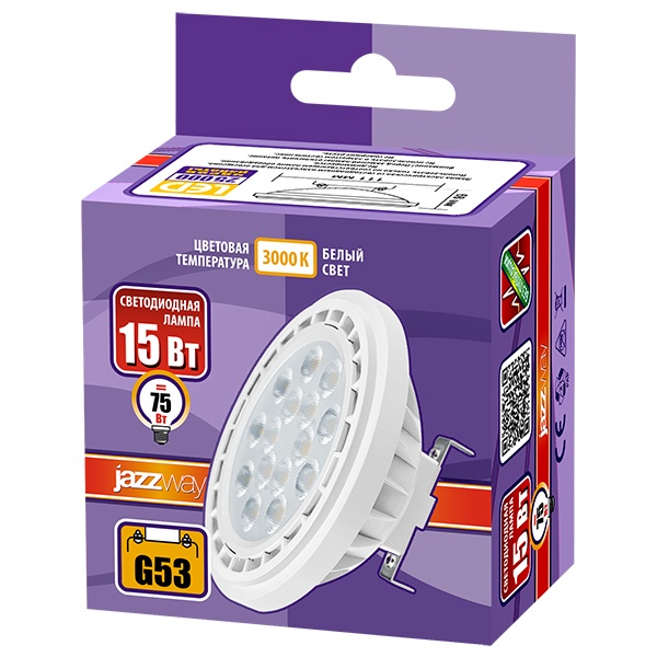 Энергосберегающая LED лампочка акцентного освещения таблетка, мощностью 15 Ватт, с цоколем G53, теплый белый свет 5017931