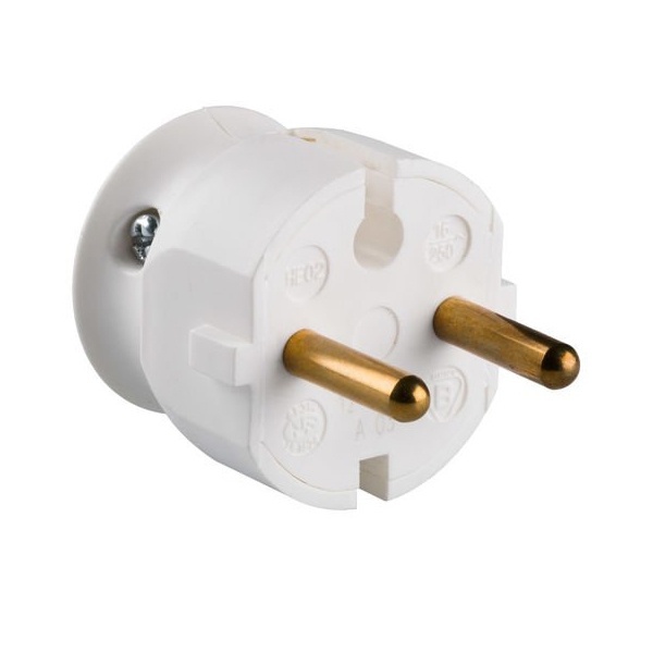 Ультраплоская пластиковая вилка (50183) белого цвета с двумя контактами на 16 Ампер 050183