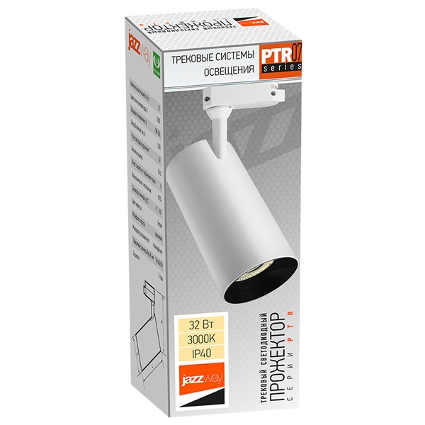 Светодиодный поворотный спот для однофазных трековых систем JazzWay PTR 07, мощность 32Вт, угол рассеивания 24 градуса, теплый свет, белый корпус 5018624